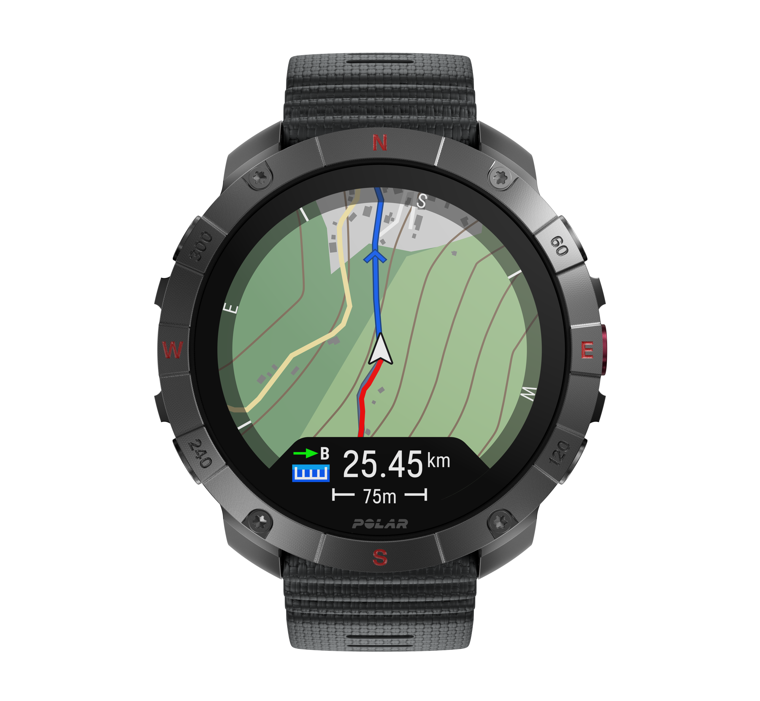 Jedną z najgłośniejszych nowinek Grit X2 Pro jest wprowadzenie pełnych map offline na zegarku, po raz pierwszy u Polara. To odpowiedź na rywali typu Garmin w serii Fenix/Epix, Coros Vertix czy Suunto, które od pewnego czasu oferują kolorowe mapy i nawigację. W zegarku mamy 32 GB pamięci, a fabrycznie wgrane mapy Europy i Ameryki Północnej. Dodatkowe regiony można dograć (za darmo). Podpinamy zegarek kablem USB-C, wykrywa się jako dysk, kopiujemy plik mapy (Polar udostępnia krajowe paczki na stronie). Ale konkurencja robi to bezprzewodowo, więc czuć drobny niedosyt.