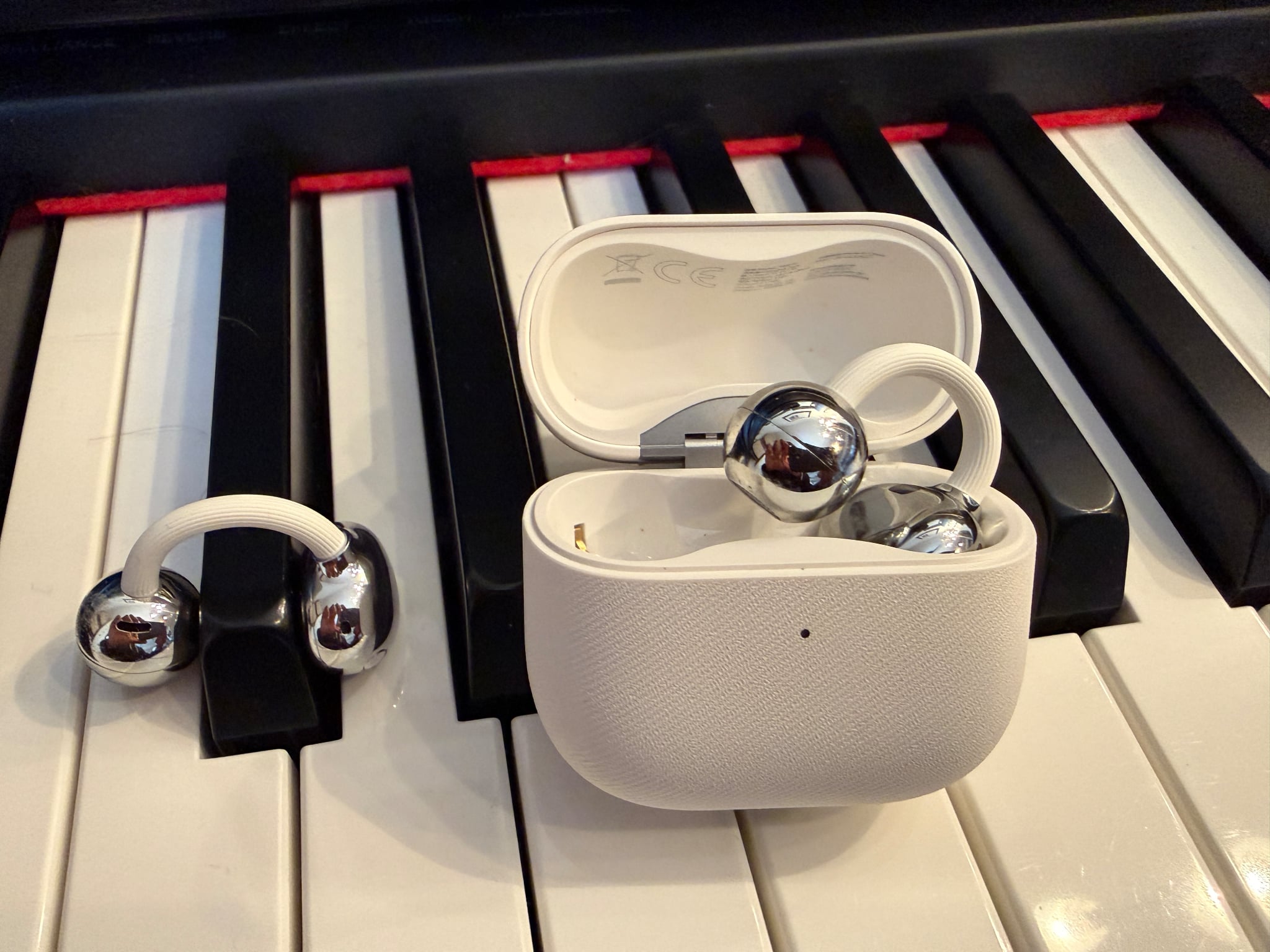 W tym sensie FreeClip 2 odpowiadają właśnie na ten problem. Wyglądają bardziej jak designerski kolczyk lub futurystyczna biżuteria niż typowe słuchawki. Ich nietypowa konstrukcja składa się z trzech części: kulki akustycznej (odpowiadającej za dźwięk), spłaszczonej „fasolki” mieszczącej elektronikę i baterię oraz łączącego je giętkiego mostka. Całość zakłada się na ucho zamiast wkładać do środka – trochę jak klips lub ozdobę. Słuchawki są świetnie dopasowane do ucha, mają konstrukcję otwartą, poprawną jakość rozmów telefonicznych i zaskakująco dobry, dynamiczny dźwięk.
